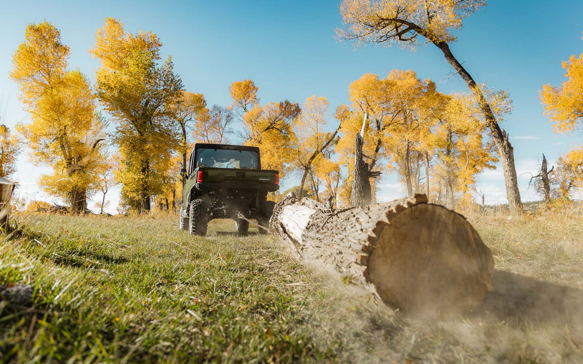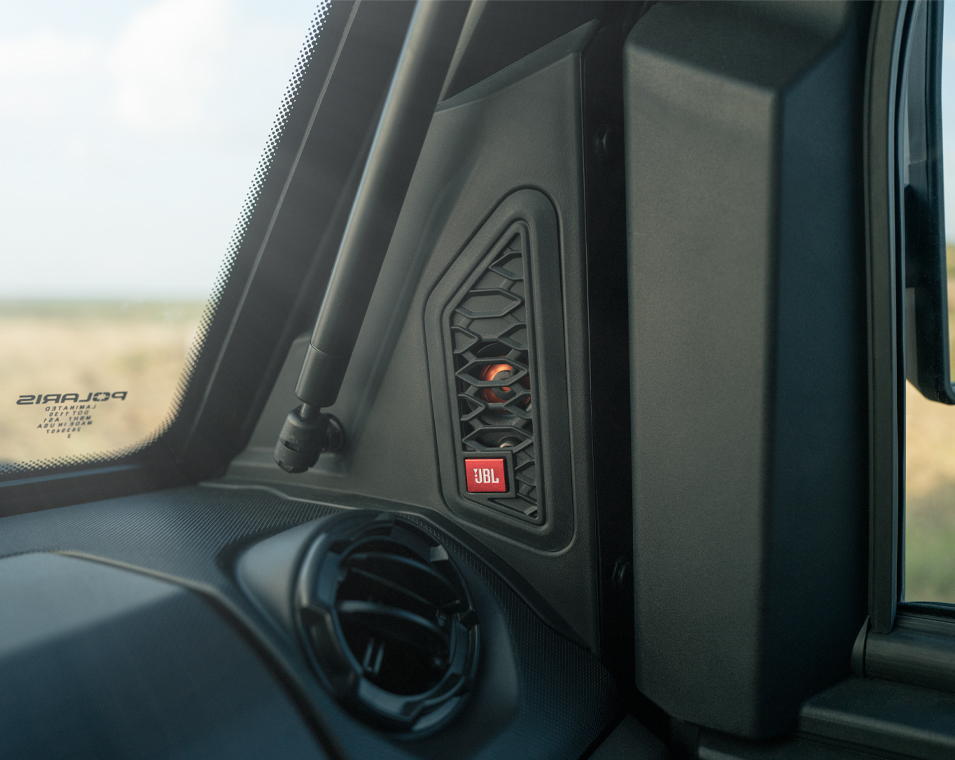 Factory-installed cab system with powered doors, roof, tip-out glass windshield, glass rear panel, rearview mirror, windshield wiper/washer, and sound insulation materials, Factory-installed heat, AC, defrost, recirculation with 5 different airflow settings, Speed limiting controlled in RIDE COMMAND, 140-amp charging system, Polaris PULSE electrical system (3-position hood and 3-position roof), USB charger, trickle charger, 12-volt accessory outlet, battery trickle-charging port, Pro Series 2,722 kg Winch with synthetic rope, Auto Stop, wireless remote and Rapid Rope Recovery, Large steel bumper, full-coverage skid plate, bumper D-rings, and top bar