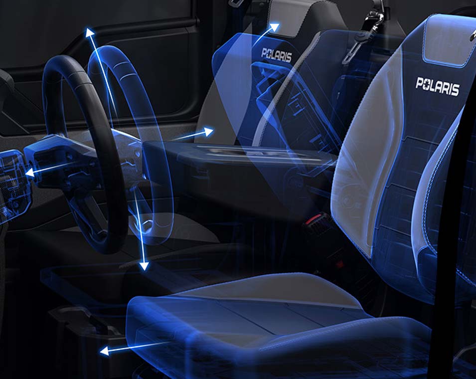 - Premium Contoured Seats with Additional Bolstering and Center Armrests. Premium Steering Wheel and Interior Accents. Polaris Pulse Electrical System (6 position), 140 Amp Charging System, Roof with Liner, Front Bumper, DC Outlet, USB Charge Port, Trickle Charger, 12V Located in the Cargo Box with In-Dash On/Off Switch, NFC Front Badge